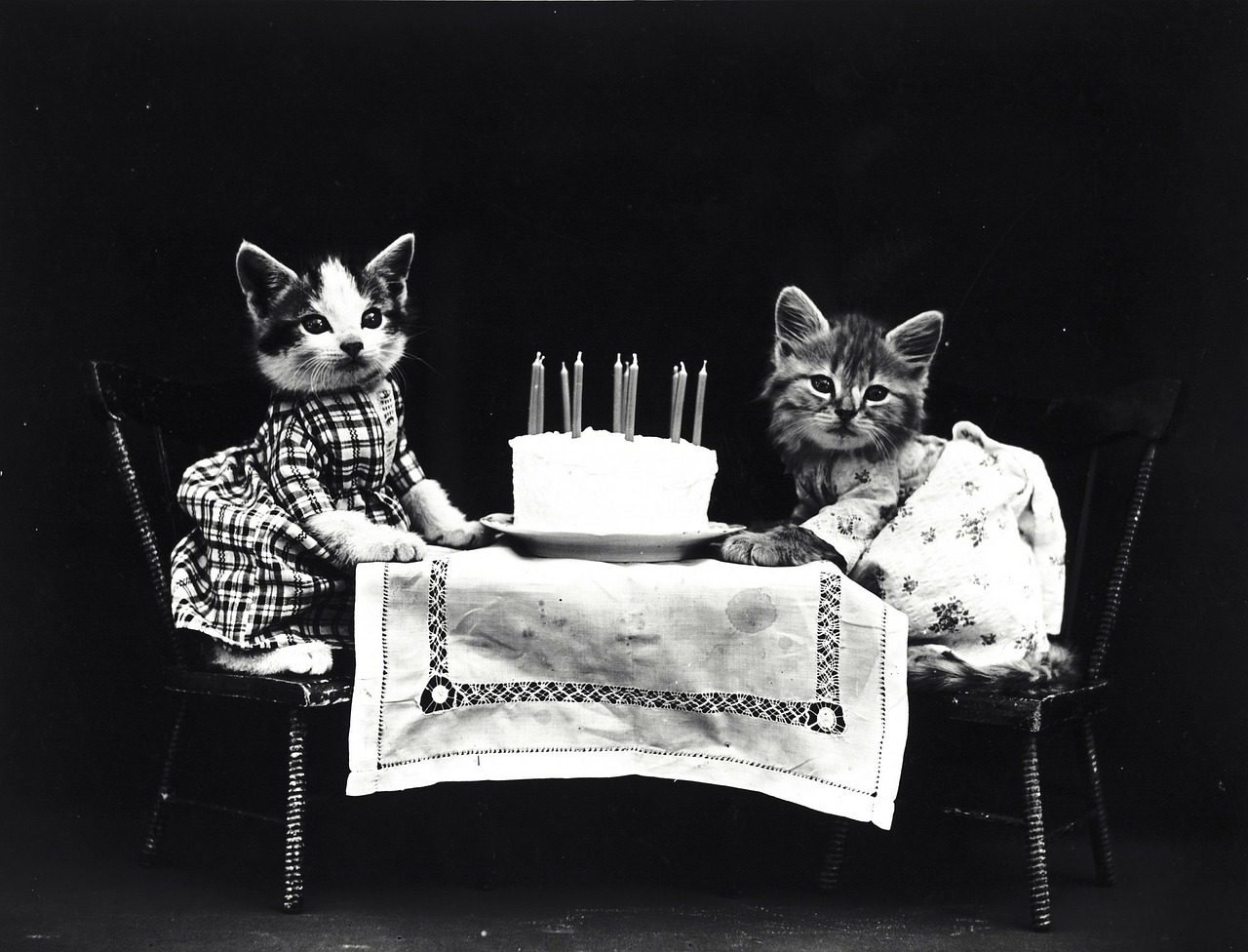 Red glasses, cake, and indifferent cats. This is 30.